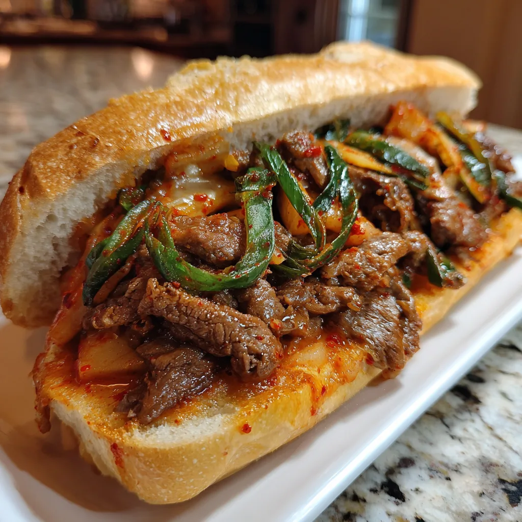 Spicy Kimchi Bulgogi Cheesesteak: A Bold Korean-American Fusion Sandwich
