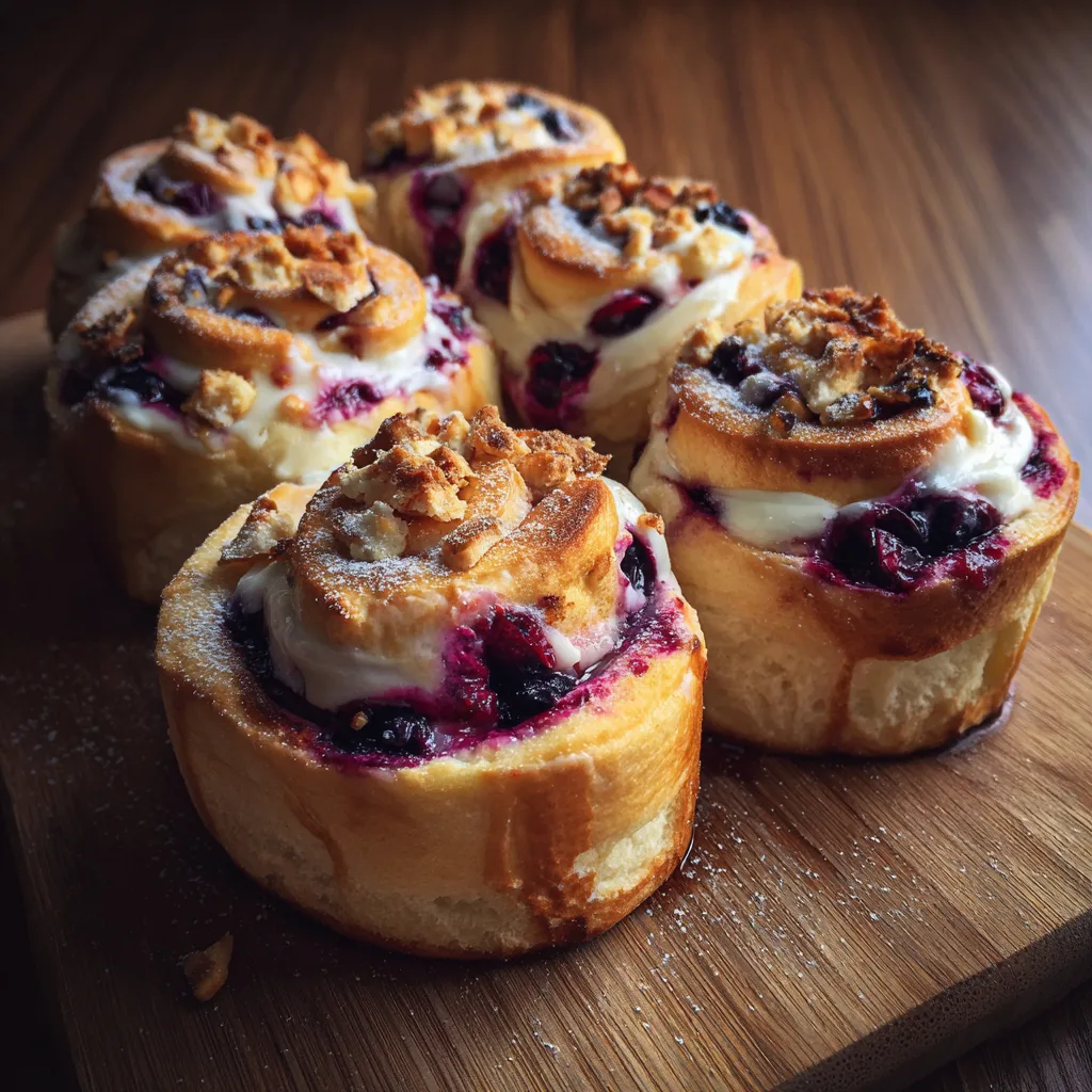 Soft, sweet rolls filled with creamy cheesecake and juicy blueberries, baked until golden and finished with a light glaze for a perfect breakfast or dessert treat.