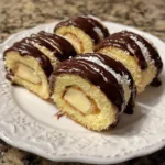 Boston Cream Roll-Ups are a quick and easy dessert inspired by Boston cream pie, featuring rolled bread filled with creamy vanilla pudding, cooked until golden, and topped with rich chocolate sauce.