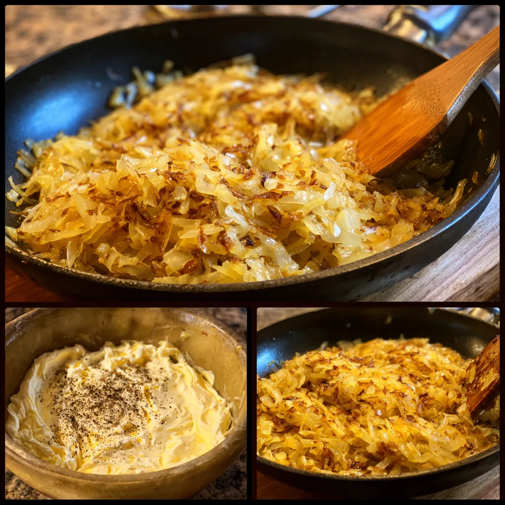 A rich and savory caramelized onion cream spread made with slow-cooked sweet onions blended into a creamy, tangy base—perfect for crackers, sandwiches, or appetizers.