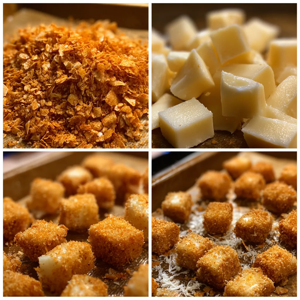 Crispy, spicy bite-sized snacks made with crushed Doritos and stuffed with gooey melted cheese, perfect for parties or indulgent snacking.