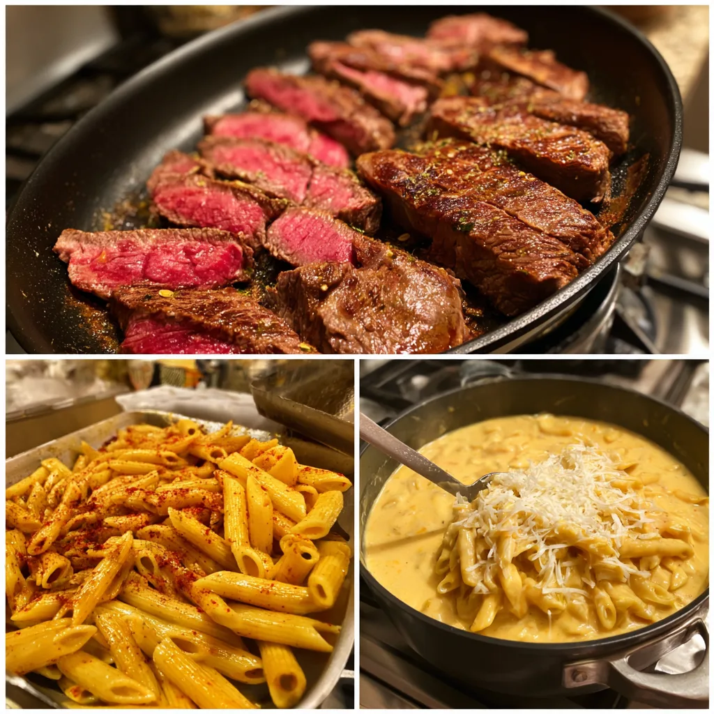 A bold and creamy Cajun-inspired dish combining tender steak, spicy seasoning, and cheesy pasta for a rich and satisfying meal.