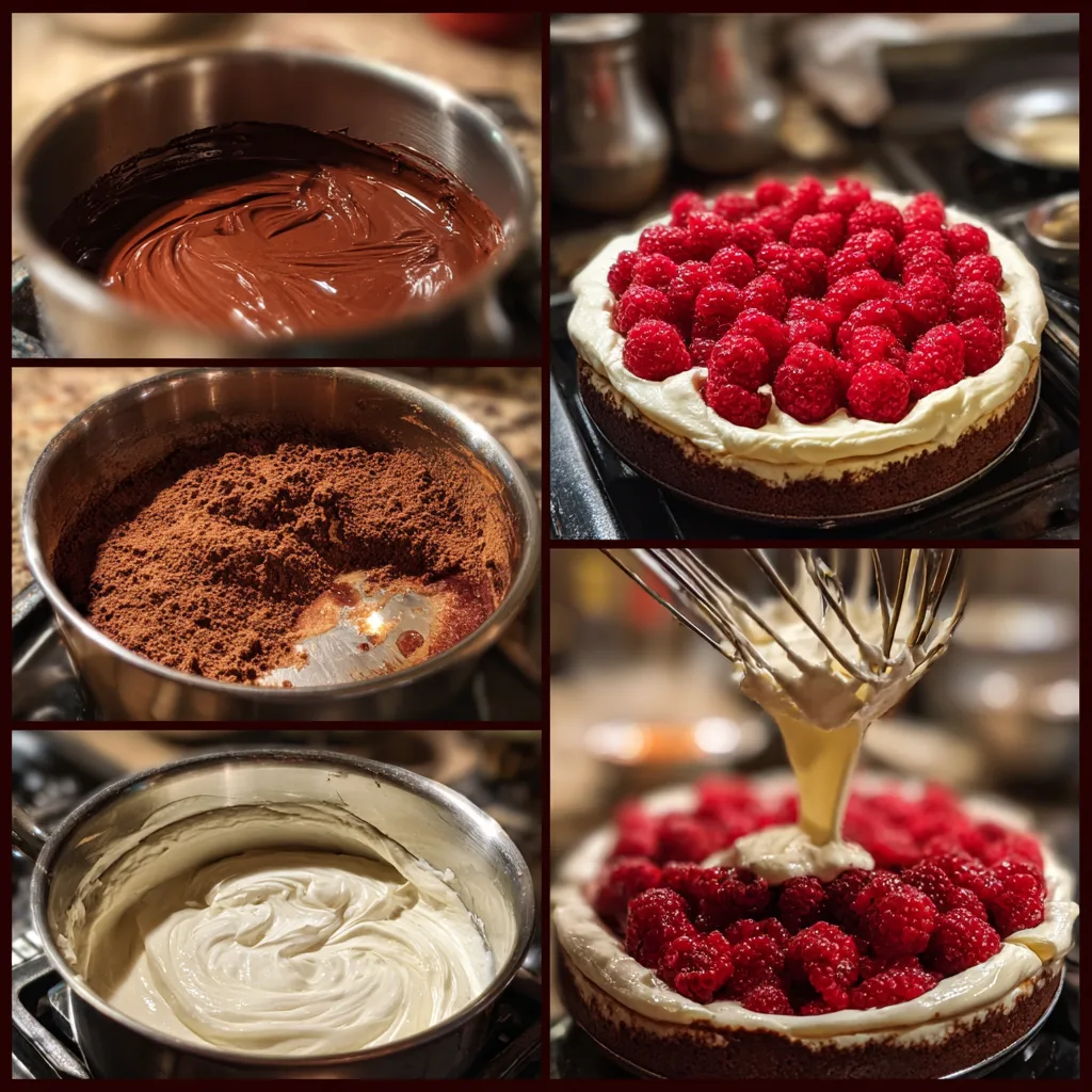 This cake can be adapted easily. Frozen raspberries can be used when fresh are unavailable, though they should be well drained. A thin layer of raspberry compote can be added between the base and mousse for extra flavor. For a darker profile, use higher-percentage cocoa chocolate. The cake can also be assembled in individual glasses for an elegant plated presentation.