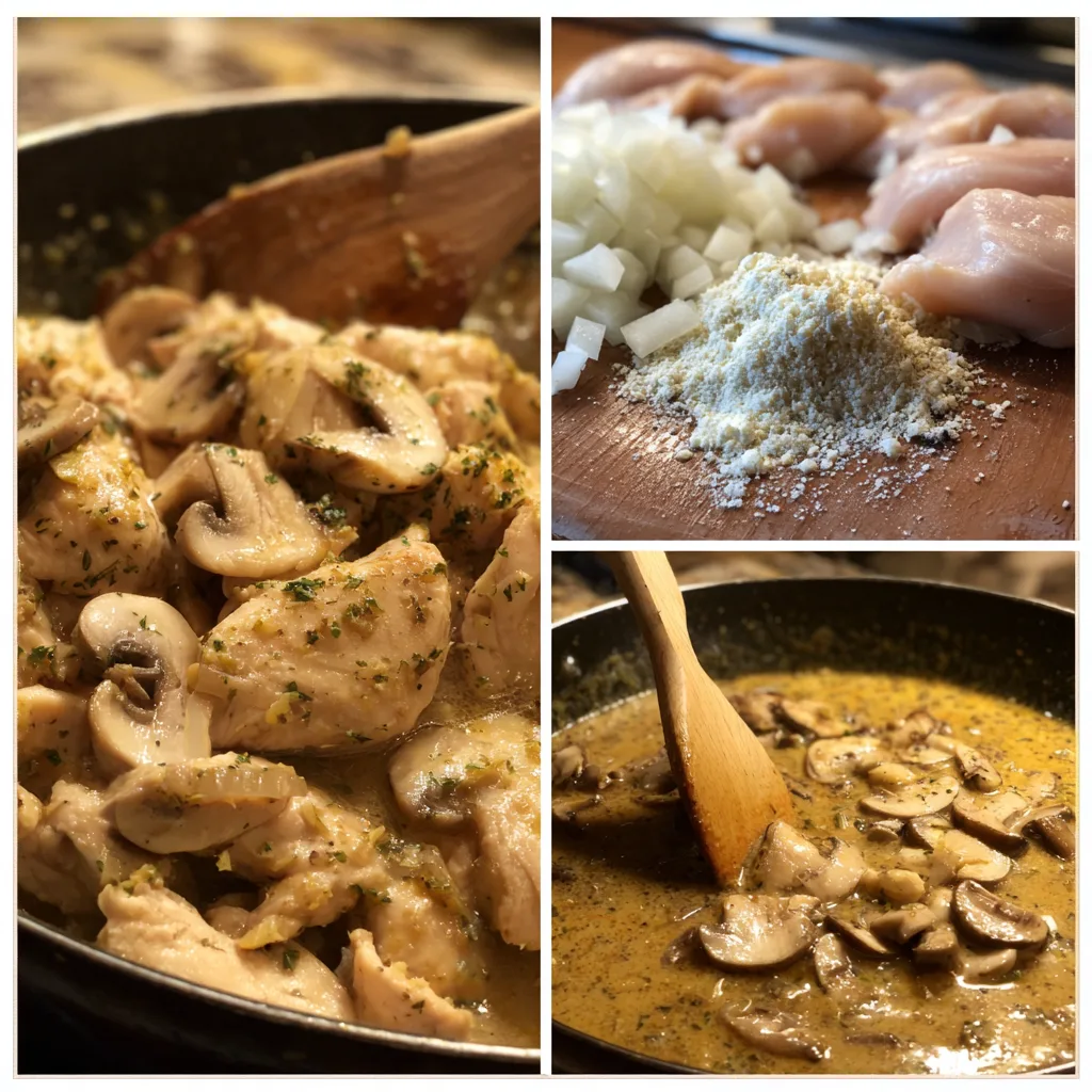 Creamy and comforting chicken mushroom stroganoff made with tender chicken strips, sautéed mushrooms, and a rich sour cream sauce served over noodles or rice.