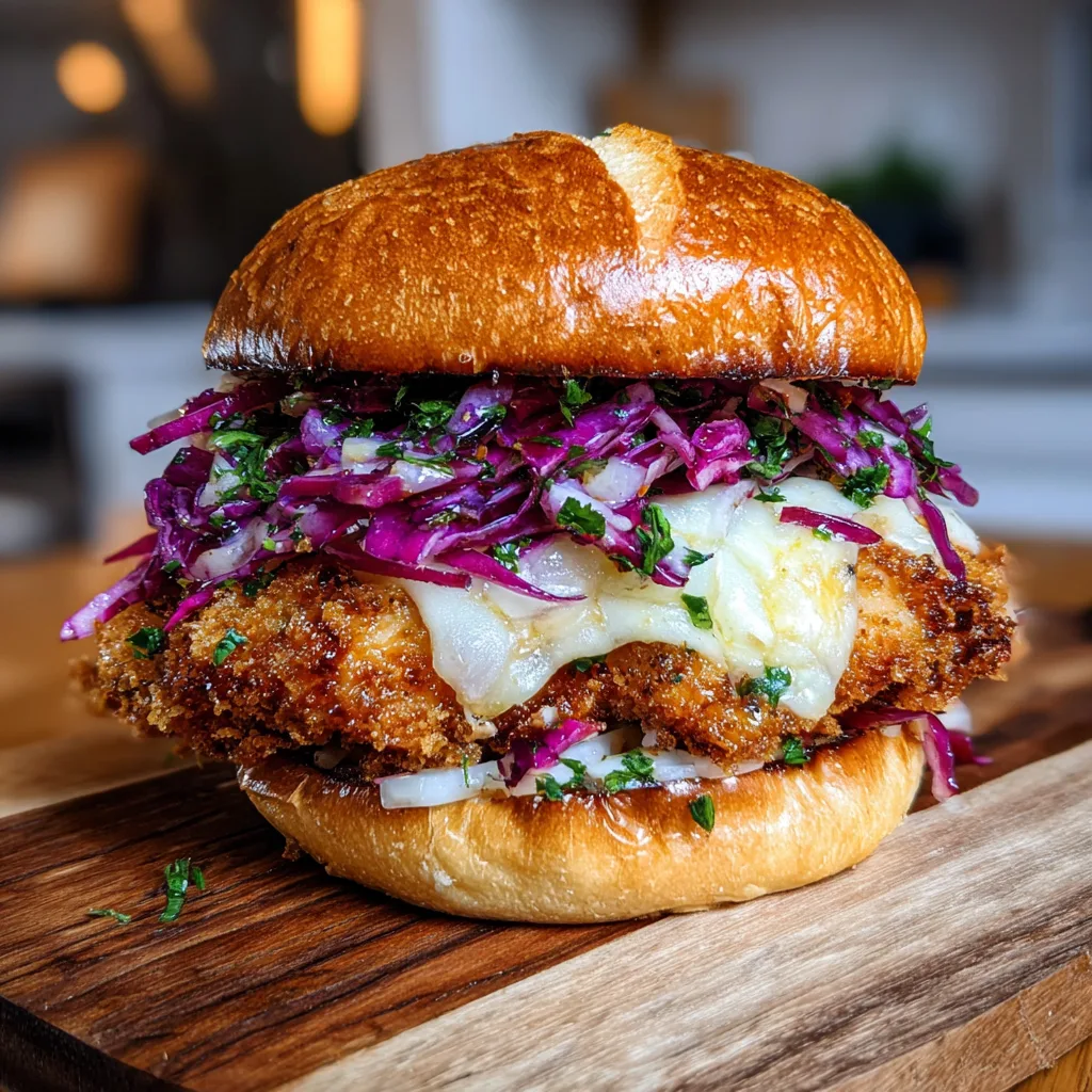 Crispy Mozzarella Chicken Sandwich with Tangy Slaw