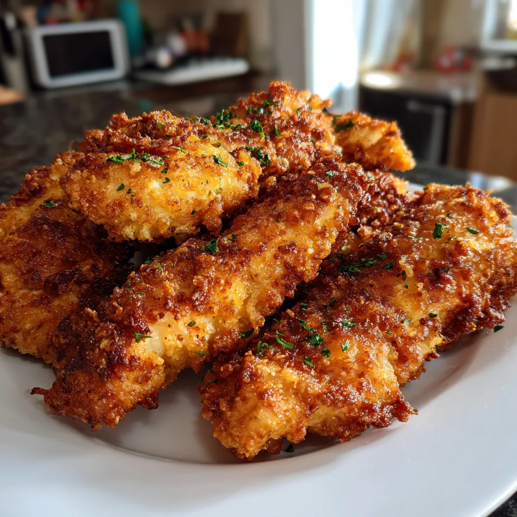 - Fry the Chicken: Heat oil in a large skillet or deep fryer over medium-high heat. Once the oil is hot, carefully add the chicken tenders in batches. Fry for 4-5 minutes on each side, or until the chicken is golden brown and crispy, reaching an internal temperature of 165°F.
