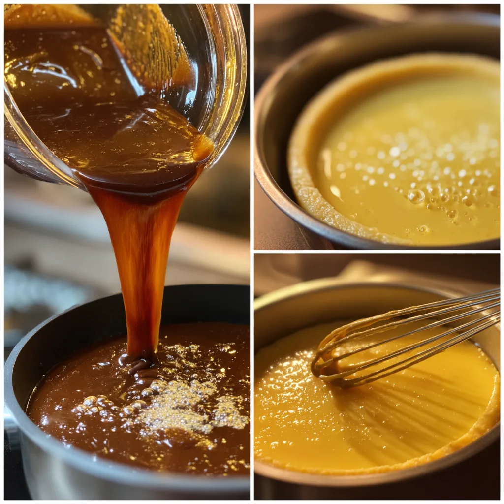 - If using caramel, pour a thin layer into ramekins or baking dish.