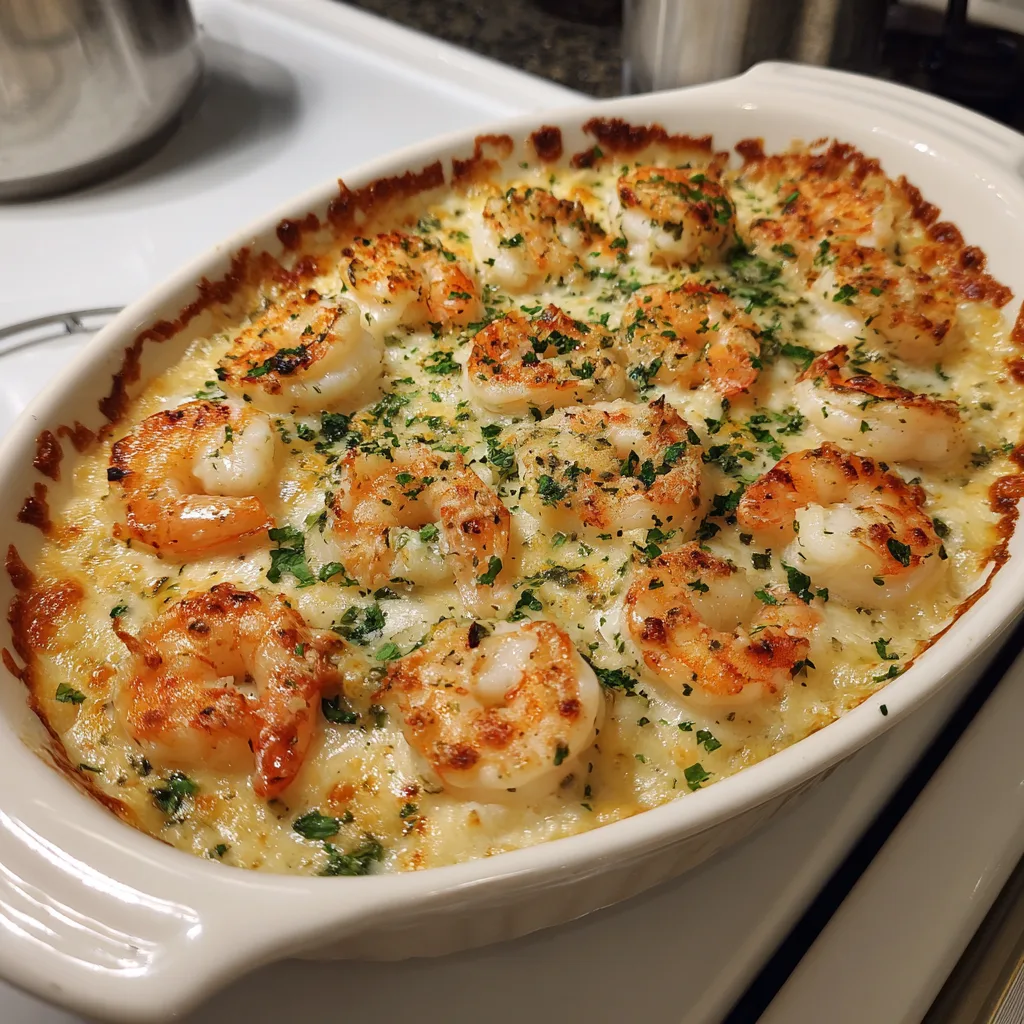 Garlic Parmesan Shrimp Bake is a quick and flavorful oven-baked dish featuring juicy shrimp tossed in garlic butter, herbs, and Parmesan cheese, perfect for an easy weeknight meal or appetizer.