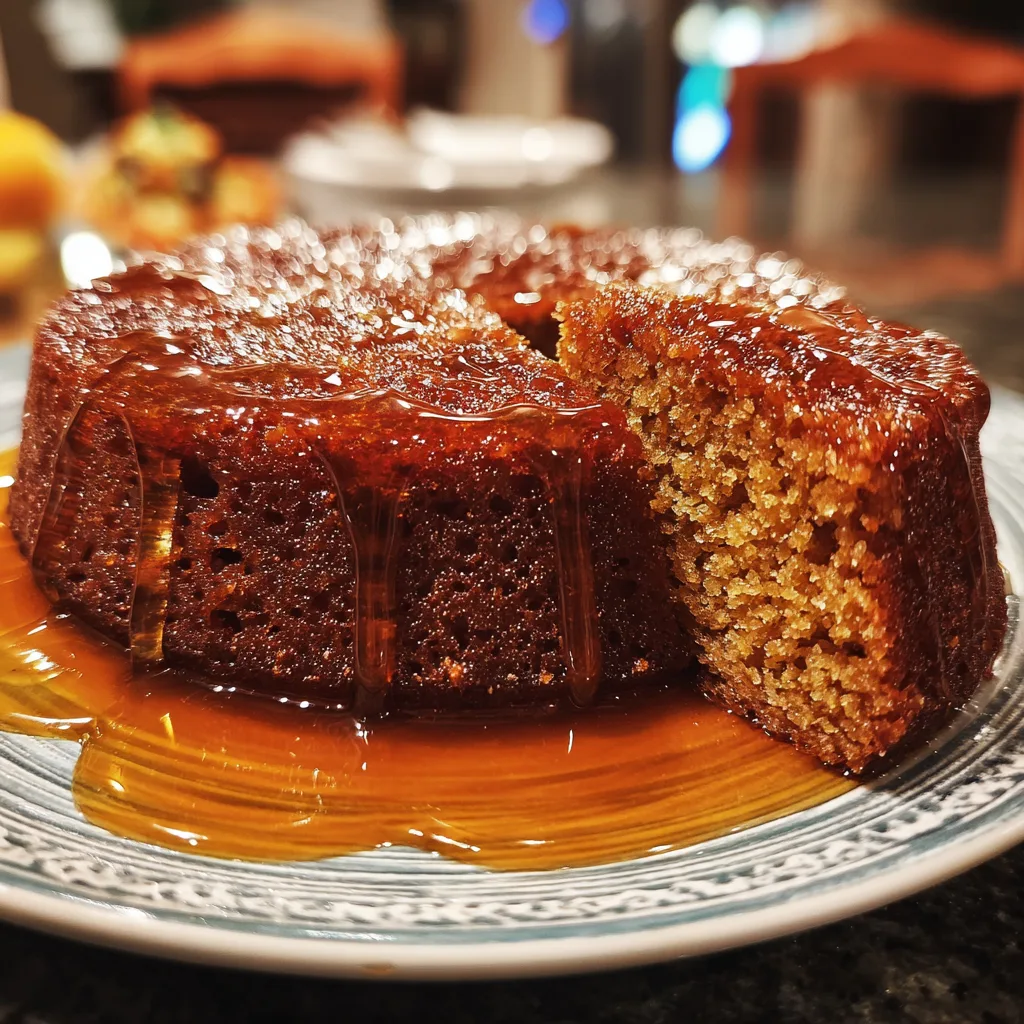 While the cake bakes, gently warm additional honey with a small amount of water or citrus juice to create a light syrup. Once the cake is baked, pour the warm syrup evenly over the cake and allow it to absorb fully before serving.