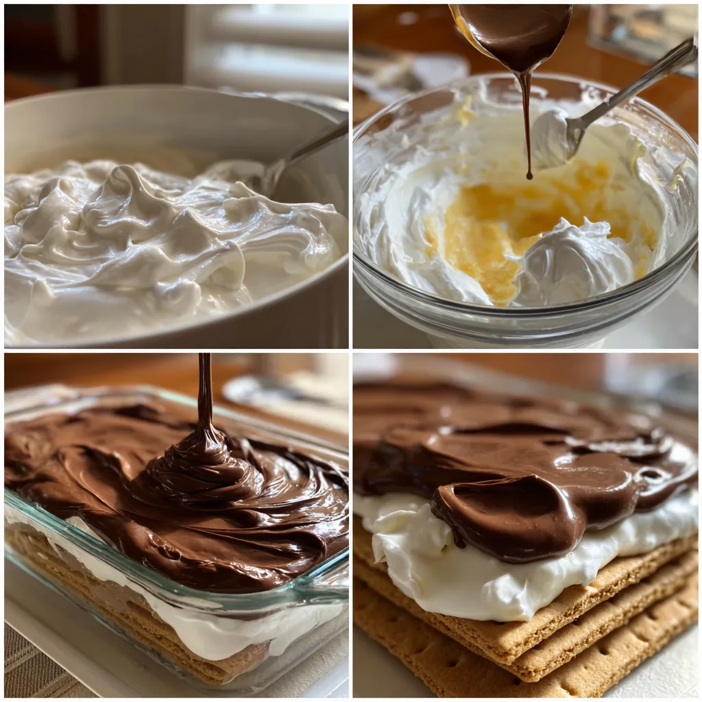 The beauty of this dessert lies in its simplicity. Instead of baking pastry shells like traditional éclairs, graham crackers are layered with a smooth vanilla cream filling. As the dessert chills, the crackers soften and develop a cake-like texture that perfectly mimics the layers of a classic pastry.