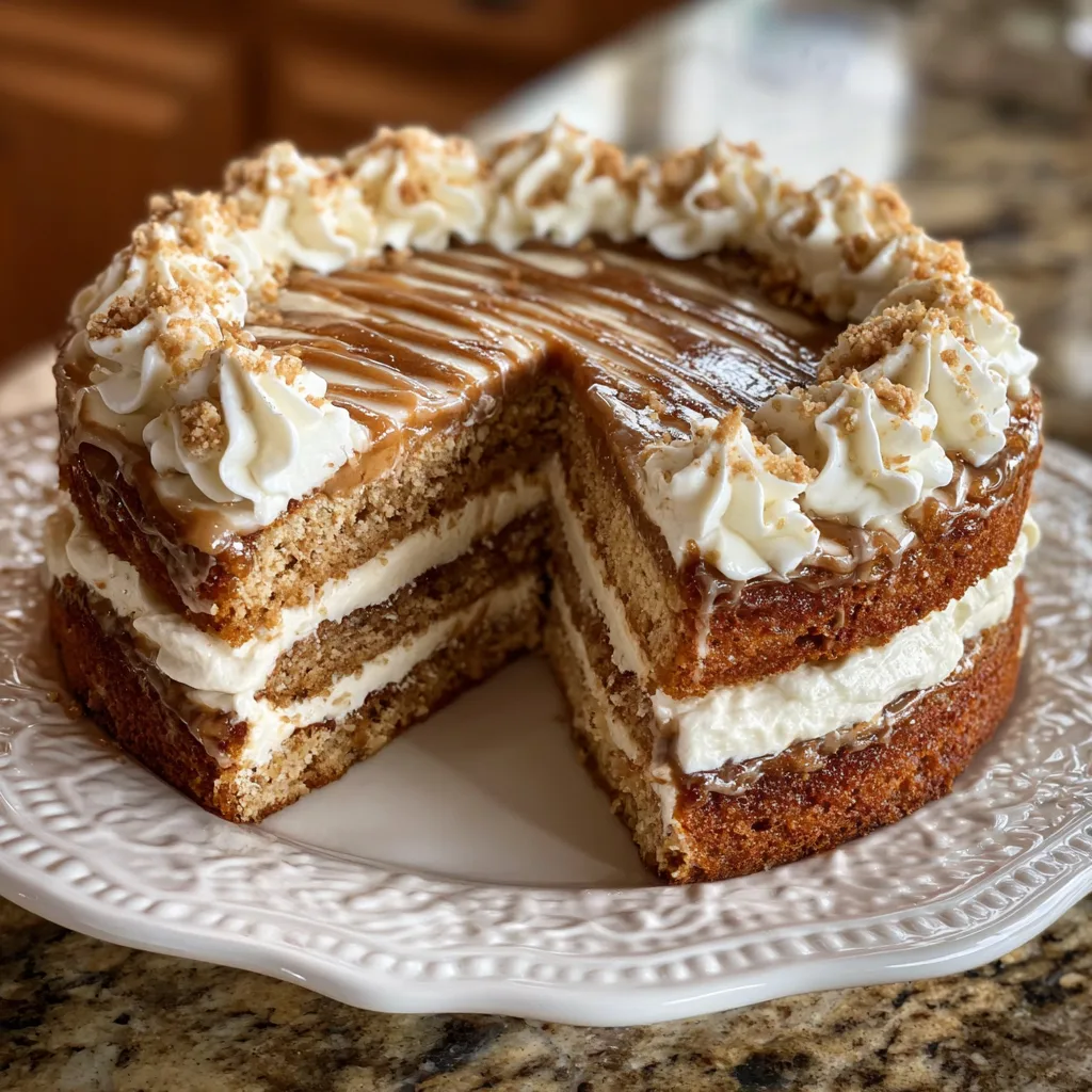 Oatmeal Cream Pie Cake is a nostalgic dessert inspired by the classic cookie, featuring moist oatmeal cake layers sandwiched with a fluffy vanilla cream filling.
