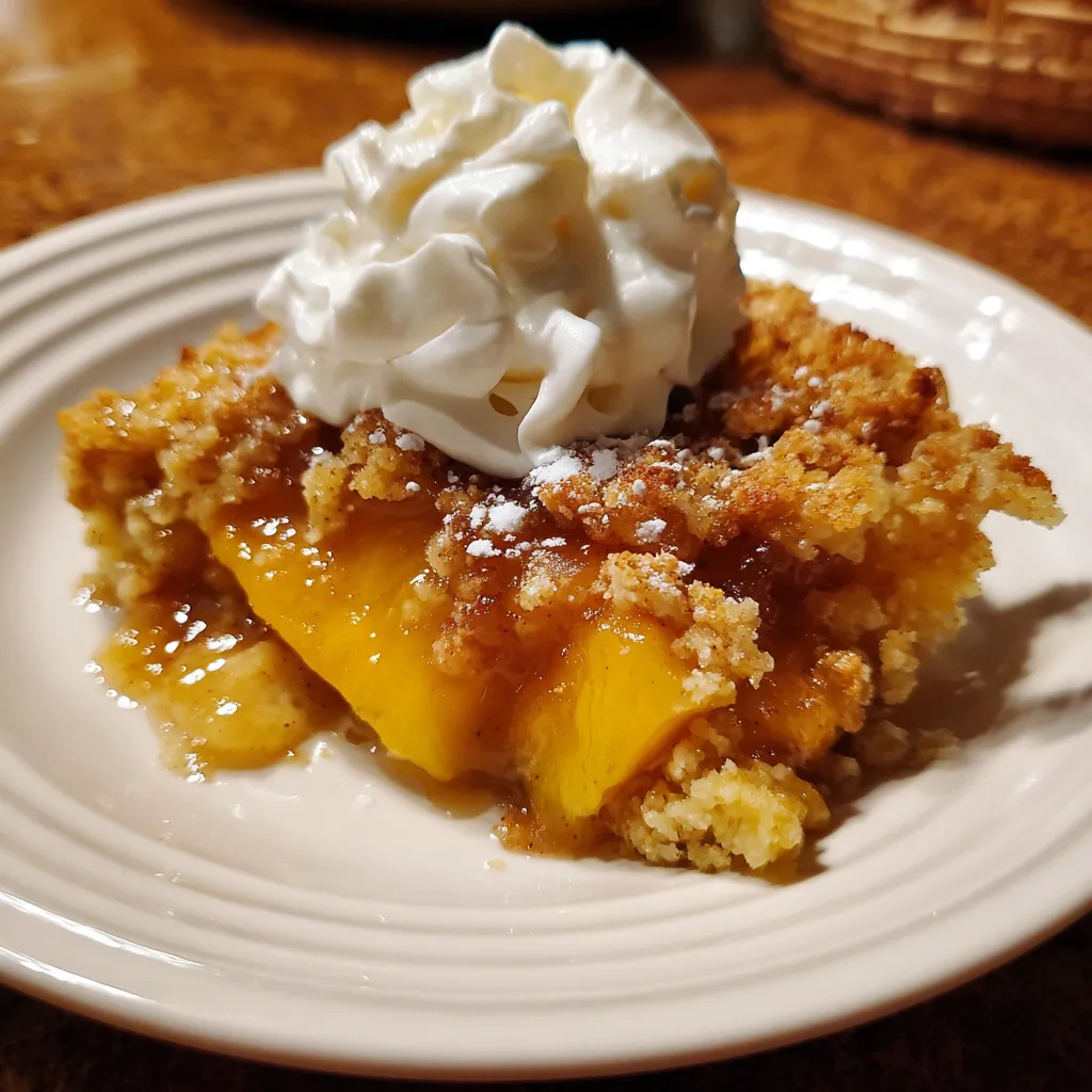 Peach Cobbler Dump Cake is easy to customize. Fresh or frozen peaches can be used when in season, though they may require additional sugar. Adding nutmeg or ginger provides extra warmth and spice. For added texture, chopped pecans or walnuts can be sprinkled over the cake mix before baking. White or spice cake mix can replace yellow cake mix for a different flavor profile. A drizzle of caramel sauce after baking adds extra indulgence. This dessert pairs beautifully with vanilla ice cream or whipped cream for serving.