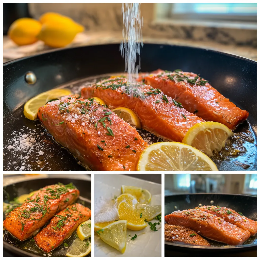 A quick and healthy salmon dinner featuring pan-seared salmon fillets with simple seasonings, served with a light and flavorful side.