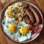 A Southern Breakfast Platter with Sausage, Eggs, and Grits is the kind of meal that brings warmth, comfort, and satisfaction to the table. It is a classic combination that has stood the test of time, offering a perfect balance of savory, creamy, and hearty elements. The rich, buttery grits pair beautifully with juicy sausage and perfectly cooked eggs, creating a breakfast that feels both simple and indulgent. I once made this on a slow weekend morning, adding a little extra butter to the grits, and it turned out incredibly smooth and comforting. This dish is ideal for starting the day with something filling and flavorful, whether you are cooking for family or enjoying a relaxed brunch. It is a true Southern staple that delivers both tradition and taste in every bite.