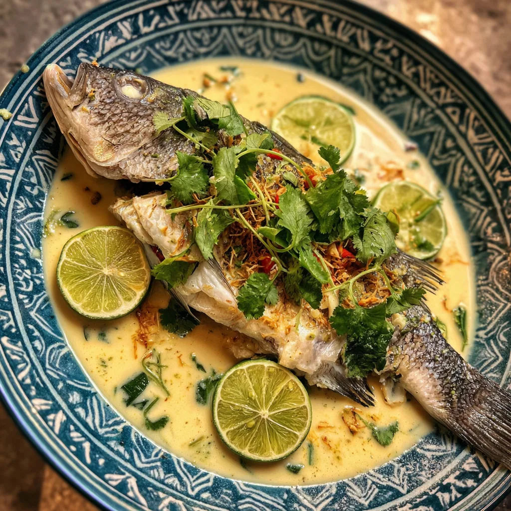 Thai Lime-Garlic Steamed Fish with Coconut Lemongrass Sauce – A Fragrant and Elegant Seafood Dish